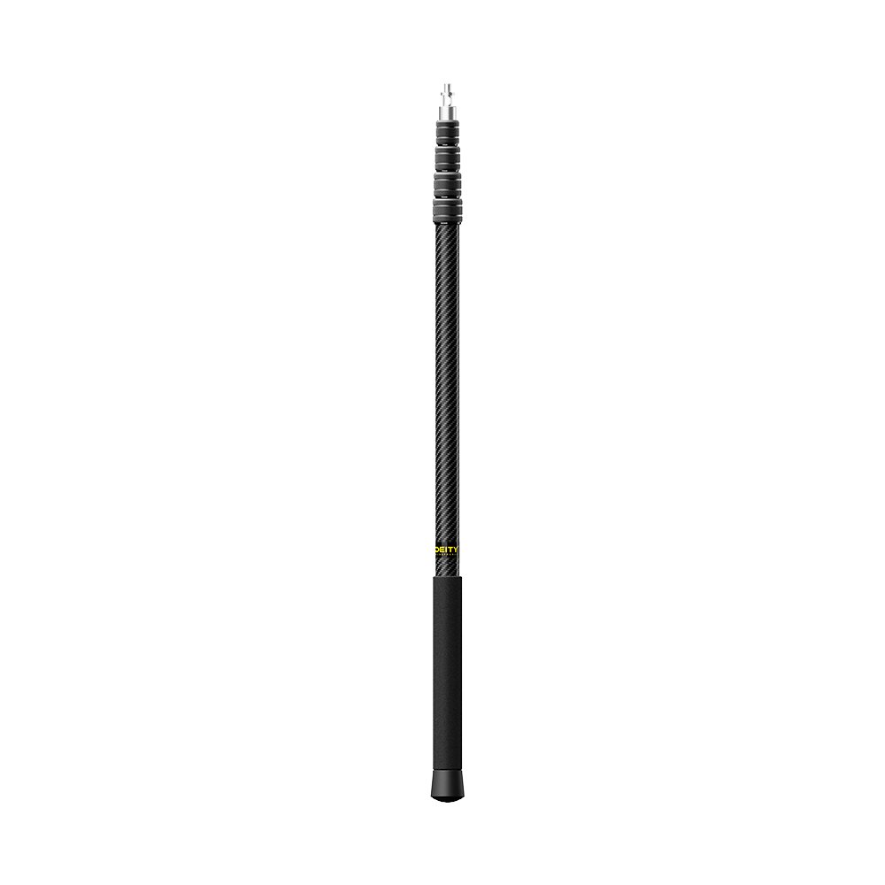 The carbon fiber Deity BP380 extends to 3.8 meteres and is able to collapse down to 92.5 cm. Featuring Aluminum collars, the Deity BP380 is designed to be ultra durable and yet still ultra-light lightweight. In total, the boom pole weighs a mere 1.5 pounds (710 grams). The foam handle helps to reduce handling noise and it is removable.